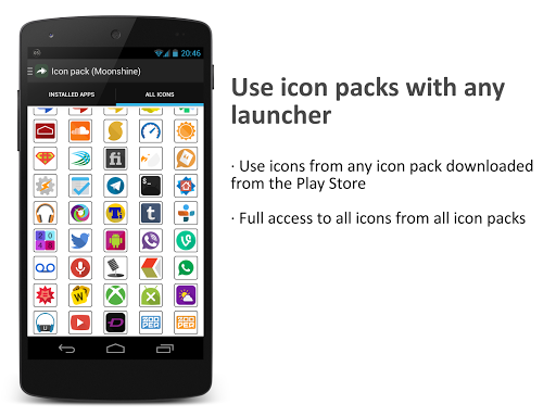 Please note that this app only changes home screen icons, not icons in the app drawer of your launcher.