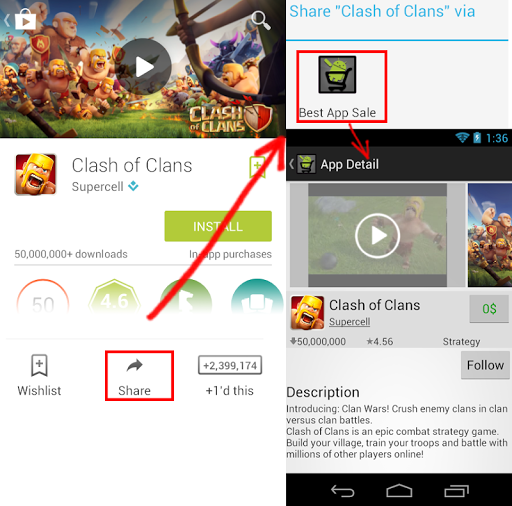 To follow an app from the Play Store, Steam, PSN, Xbox, GOG or Origin website, use the “share” button and select “best app sale” to open the page of this app on best app sale. You will find the follow button and the price history.