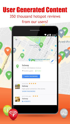 It’s very simple now to connect to WiFi – our WiFi map is always close at hand. On our WiFi map you can easily find the nearest WiFi hotspots, passwords to WiFi hotspots, reviews about WiFi connection and places where WiFi is located.