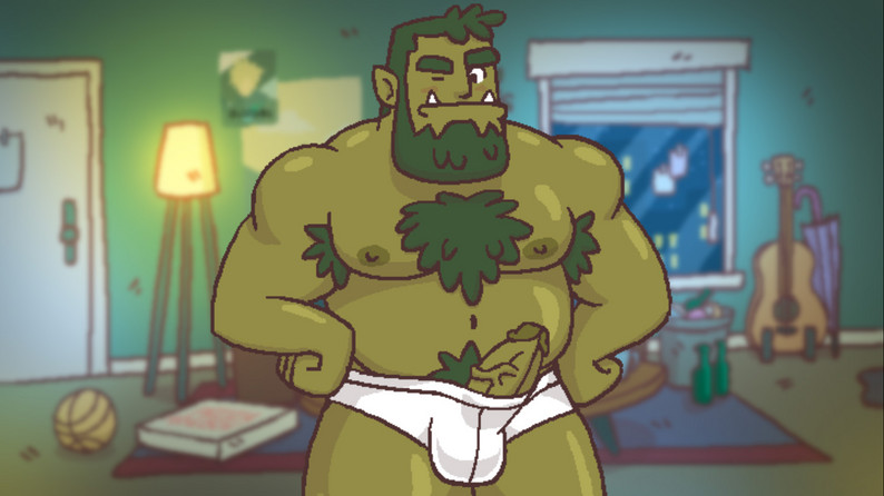 He lives with Kro, a lazy orc who spends his days on the couch playing video games, drinking beer, and jerking off. Kro is also a drummer in a local band that plays cheesy music.