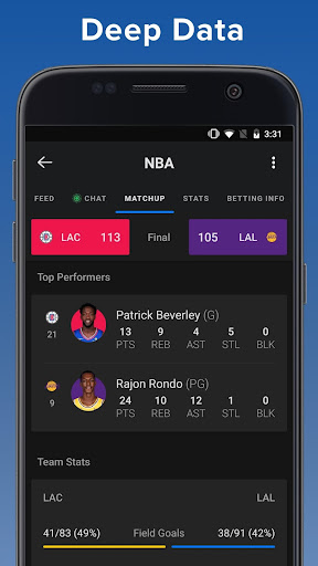 *Scores – A live view of every game. Every score at a glance, updated in real-time. Just tap the matchup for detailed box scores, including live player data, betting lines, news and multimedia.